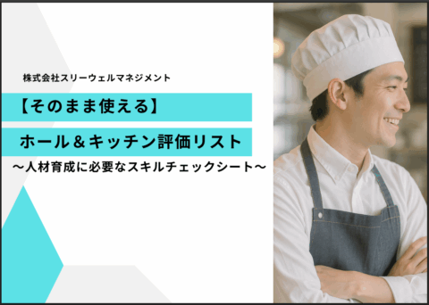飲食店ですぐに使える『ホール&キッチンスキルチェックシート(エクセル)』がゲットできますよ。